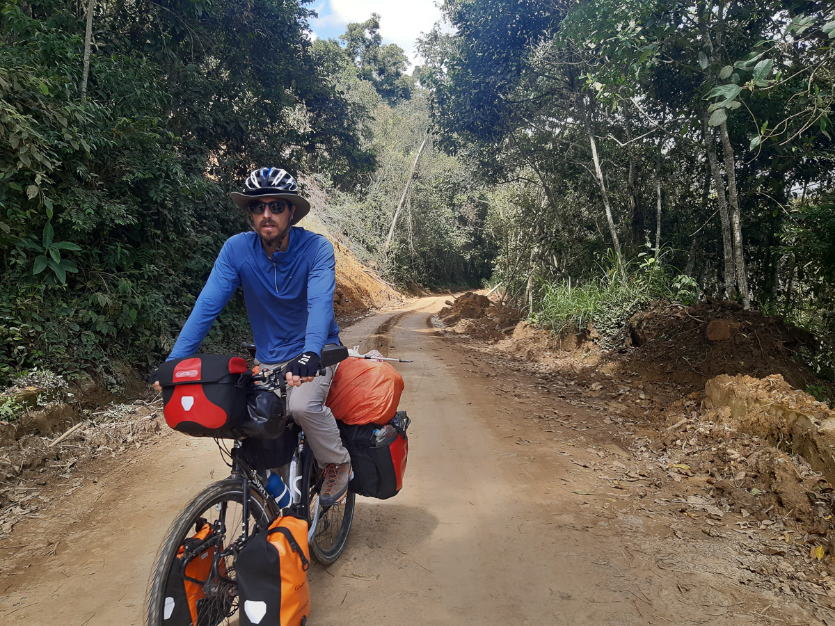La superbe piste dégotée par Damien dans une végétation typique de la forêt tropicale sèche nous enchante. Des murs de pierres, des acacias, des cactus, des cigales et des arbres majestueux d’où pendent des lichens argentés…