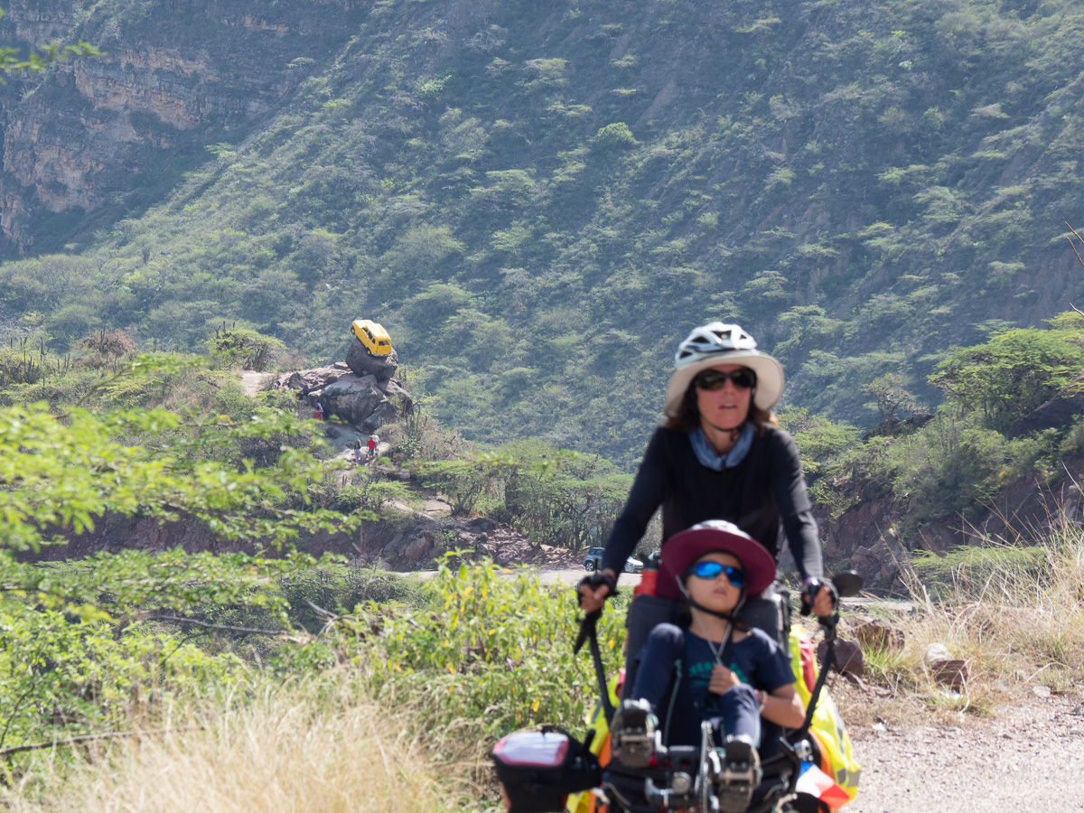 Le troisième jour, ils nous accompagnent en vélo jusqu’au canyon de las Iguanas, une gorge aux falaises ocres auxquelles s’accrochent cactus et plantes grasses. On plonge dans les eaux rafraîchissantes du gouffre, on savoure une aguapanela au chocolat avant de nous séparer. Les au-revoir sont émouvants tant nous nous sommes sentis proches!! A bientôt les amis!!