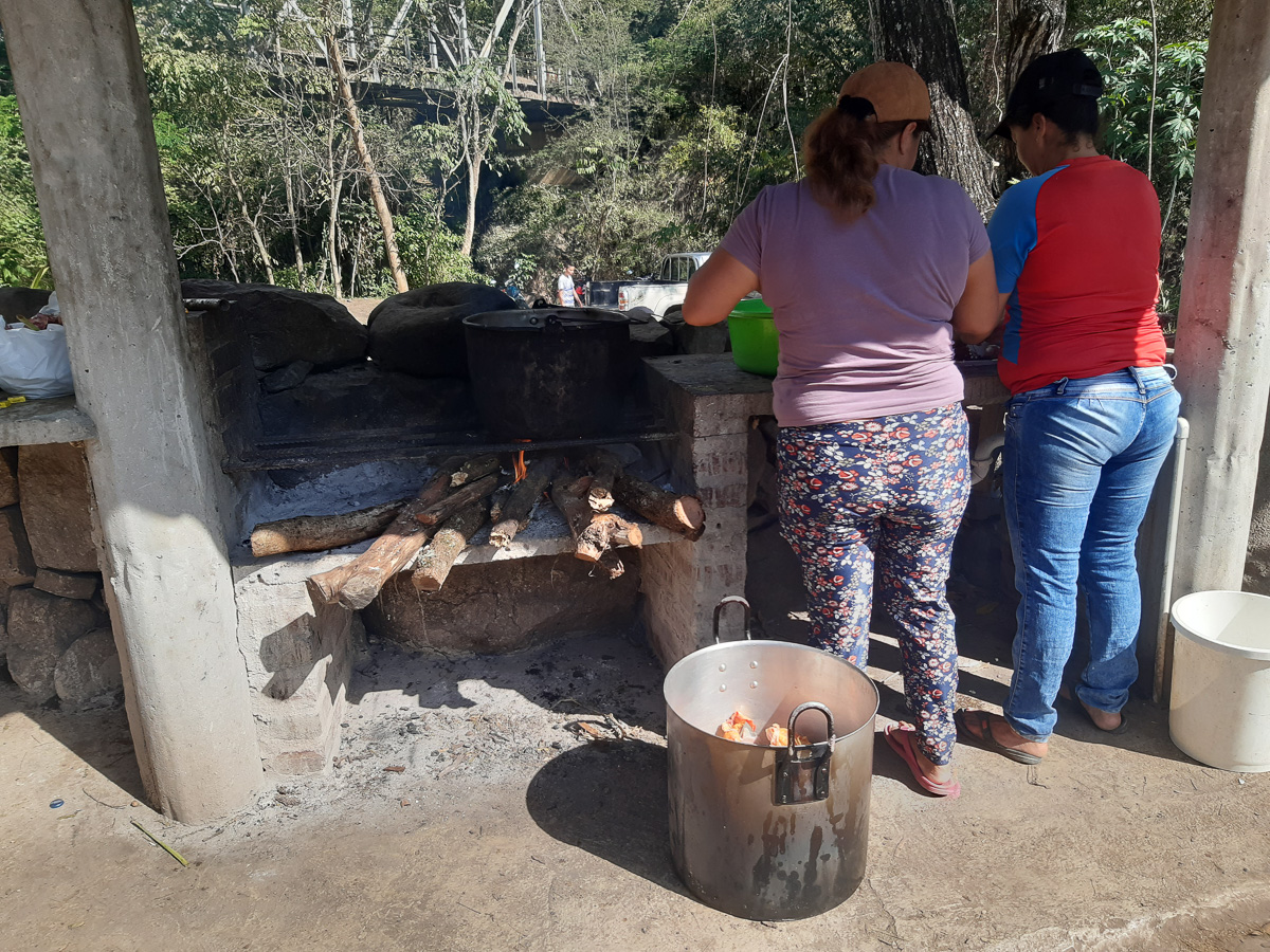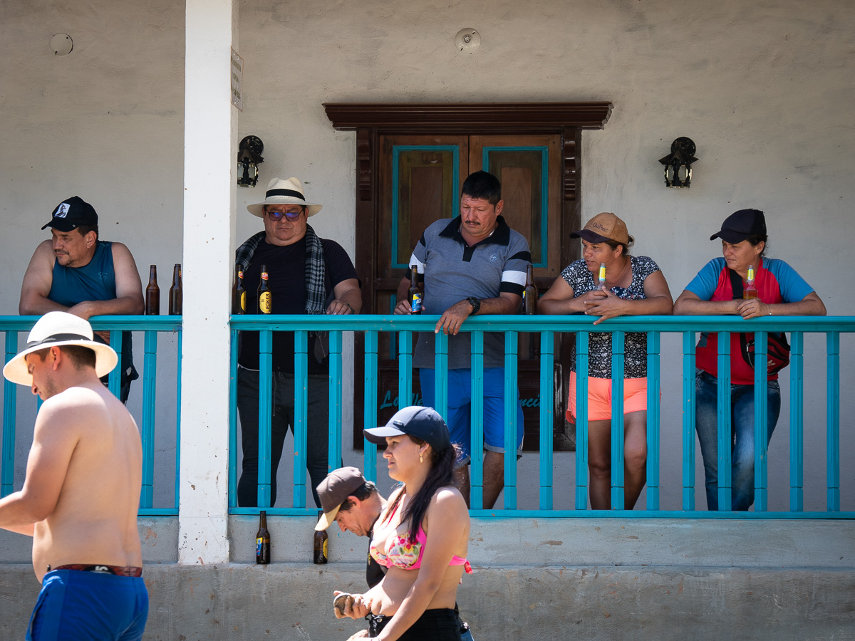 Nous sommes dimanche et les familles colombiennes nous rejoignent en pick up déballant marmites, poulets et yukas!! Ils viennent passer la journée au frais en préparant au feu de bois le Sancocho, la soupe locale. On adore l’ambiance très détendue et festive. Les hommes jouent à des jeux de palets, les femmes cuisinent, les enfants se baignent. On sent les traditions séculaires, mais aussi un bonheur simple retrouvé. On se regarde mutuellement avec curiosité jusqu’à ce qu’une famille nous offre une assiette de grillades. On leur a fait pitié avec notre salade de riz. On nous offre aussi de la bière qui coule à flots depuis ce matin.