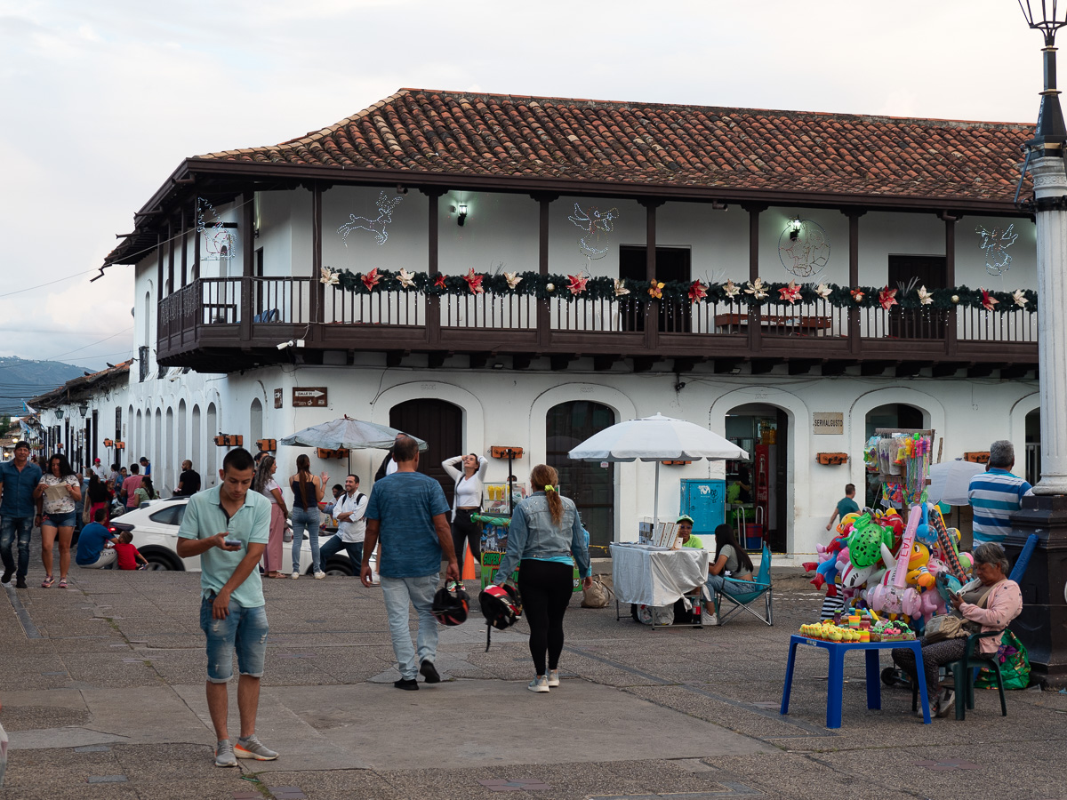 La petite ville de Zapatoca nous enchante encore une fois avec ses toits de tuiles et ses couleurs chatoyantes. La cathédrale en pierres locales ocres contraste avec les murs blancs et les portes colorées. Il fait bon se laisser porter par nos pas au gré des ruelles et des escaliers, et des haltes gourmandes.
