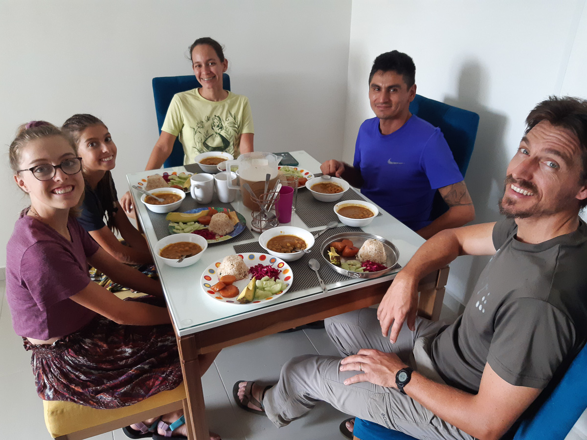 Nous déjeunons au marché et remplissons les sacoches de fruits et de légumes avant de rejoindre la maison de Ricardo et Guillermina et leurs deux grands enfants.