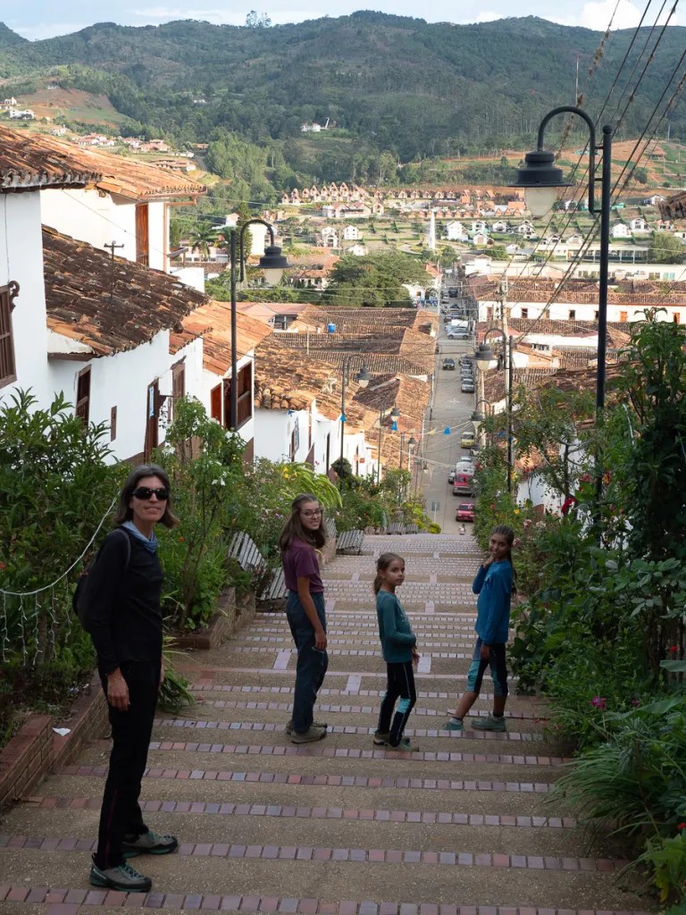 Enfin le col et la descente vertigineuse sur Giron tout en bas…. une ville coloniale, aux maisons blanches et aux portes de bois, aux trottoirs surélevés et aux rues pavées. On adore !