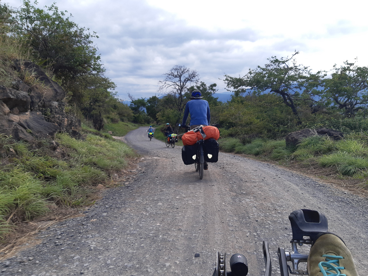 Quand on emprunte la piste, on comprend les recommandations de Ricardo. Ce doit être une vraie patinoire en cas de pluie. Elle est bien sèche mais très caillouteuse. On a des crampes aux mains à force de freiner. On ne peut pas se laisser aller et allons aussi doucement qu’en montée. Damien lâchera même » j’en ai marre de cette descente!! » Imaginez la frustration!