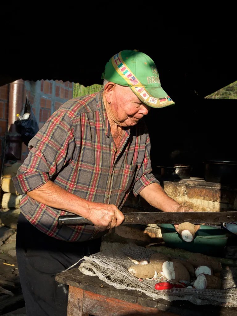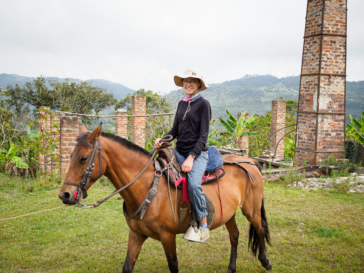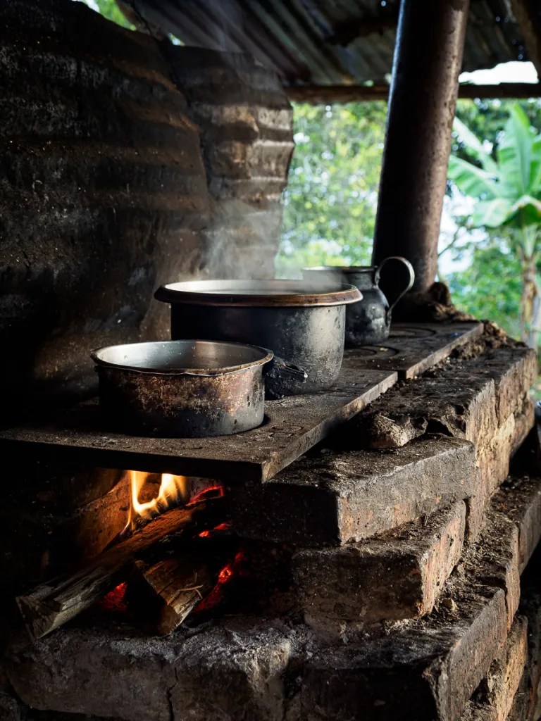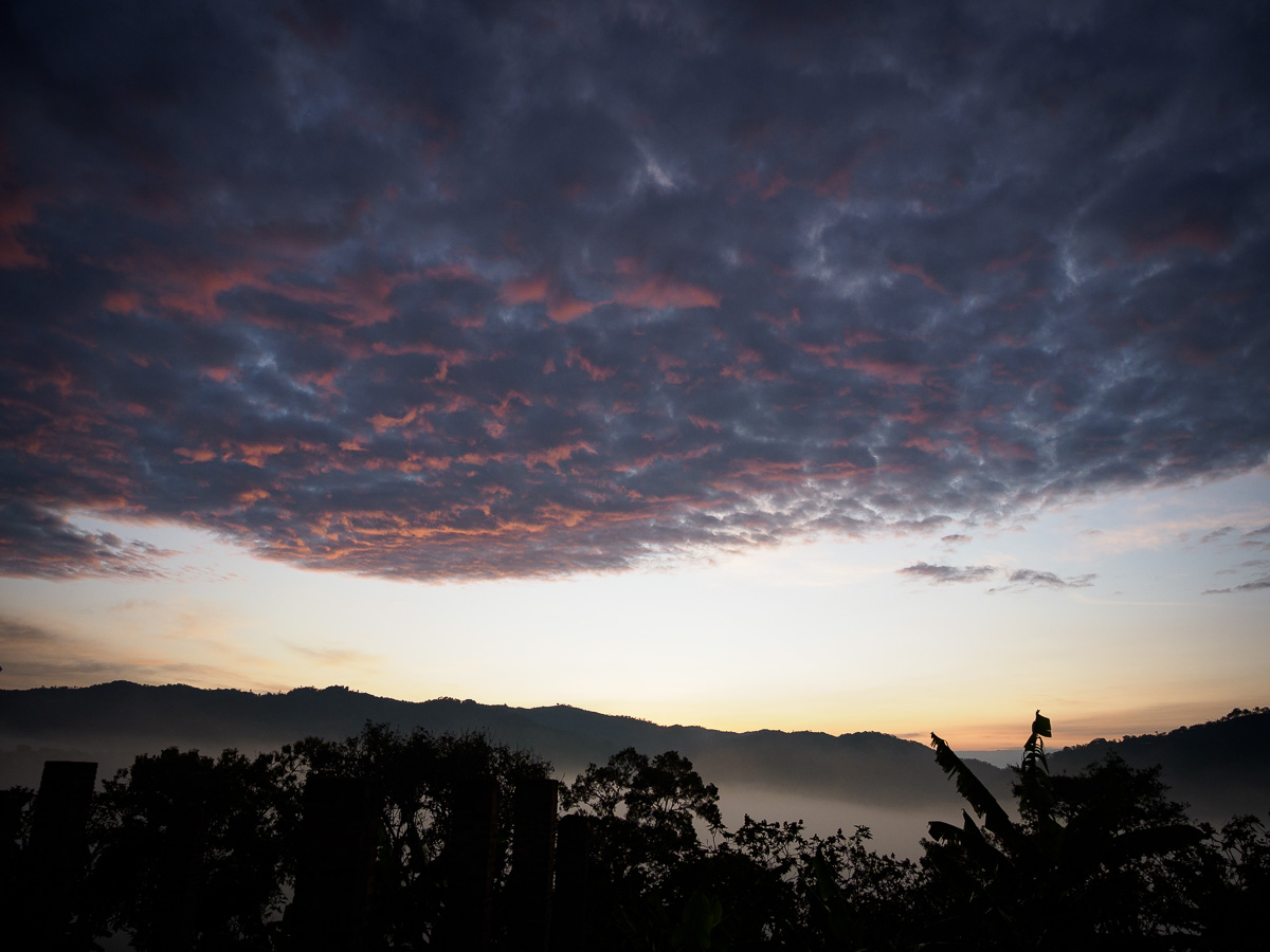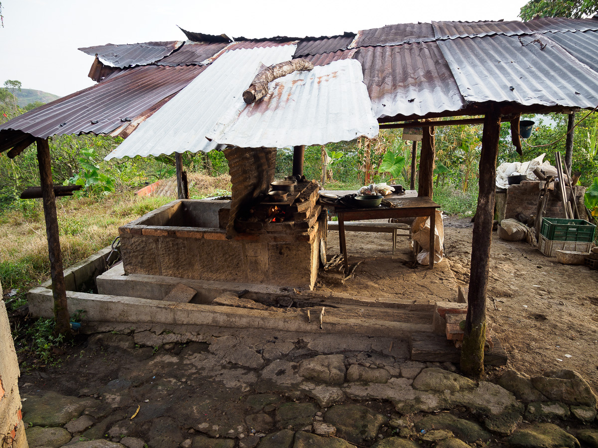 Des « envueltos », pâte de maïs sucrée cuite dans des feuilles de bijao, une agua panela qui réchauffe et la discussion bat son plein autour du voyage, de la France et de la Colombie… sans oublier le café et la famille. Dans cette maison familiale perchée sur une colline, vivent Elsa, son mari Rey et son frère Gerardo. Livardo, un autre frère et son épouse Nubia habitent un peu plus bas. La finca leur vient de leurs parents. Les vestiges d’une ancienne cheminée de briques témoignent de son passé liée a la canne à sucre, alors qu’Elsa y est revenue pour se lancer dans la production de café.