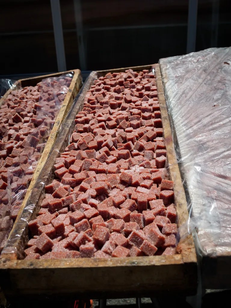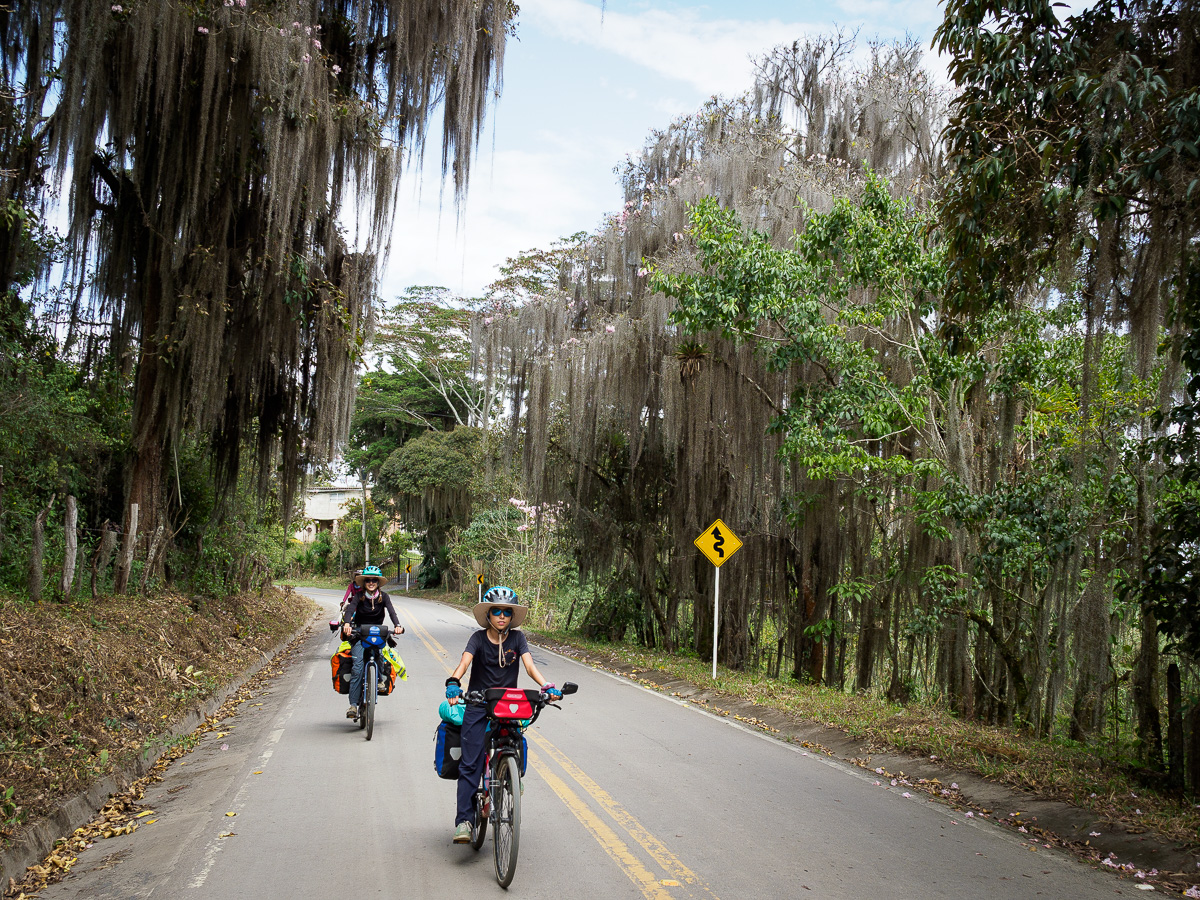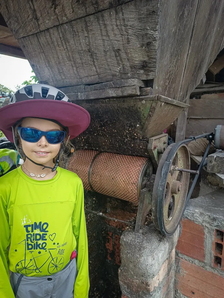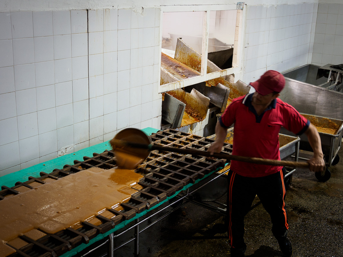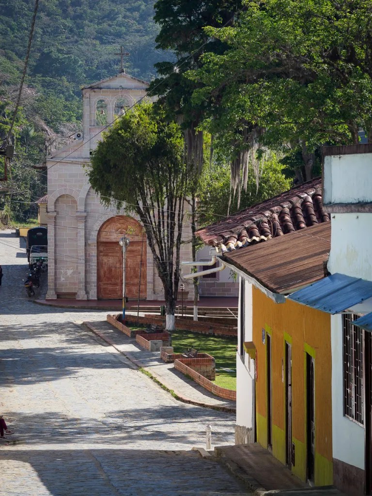 La culture de la canne à sucre est encore très présente ici. Des mules chargées nous doublent et notre odorat est titillé par les effluves sucrées émanant de chaque moulin ou trapiche. Chaque exploitation semble avoir sa propre fabrique. Avec nos références européennes, nous nous demandons pourquoi ils ne créent pas des coopératives. Mais les routes sont tellement mauvaises que les mules ne peuvent pas faire des kilomètres pour atteindre le moulin… Après un bivouac sur le terrain de foot de Chipata viejo, nous atteignons Velez, capitale du bocadillo ou pâte de fruits de goyave, notre carburant. Nous roulons maintenant enveloppés de l’odeur de la goyave caramélisée s’échappant des fabriques locales. Nous ne pourrons pas les visiter pour des raisons d’hygiène mais le contremaître nous offre des blocs de pâte de fruits et nous envoie des vidéos de la chaîne de fabrication!!!