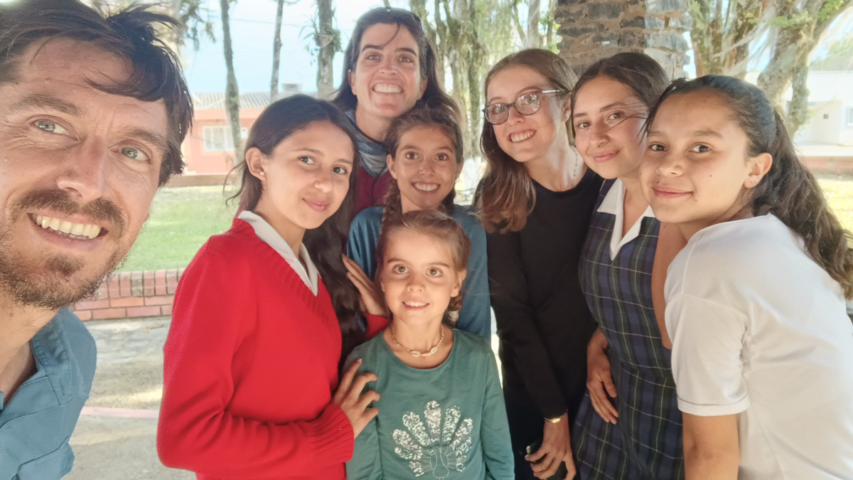 Pour nous, ce sont deux informations contradictoires : l’adjectif « bonne » ne peut pas convenir à une piste caillouteuse. Et en effet, elle est plutôt terrible. 10km en 4heures… on a eu le temps d’admirer le paysage. D’ailleurs, sur ce pan de montagne la végétation est très sèche ! Nous poussons plus que nous ne roulons et arrivons en nage à Aguada pour la pause de midi. Nous y rejoignons Andres qui nous dégote un bon coin de bivouac à côté d’un mirador avec l’accord de la police locale. Nous passons une chouette après midi sur la place de ce petit village qui nous a tant charmés. Héloïse joue longuement avec une petite fille pendant que nous discutons avec 3 collégiennes dont l’une rêve de découvrir la France. Elles n’ont jamais vu d’étrangers dans le village. On se régale d’échanger et Manon continue à leur écrire grâce à WhatsApp.