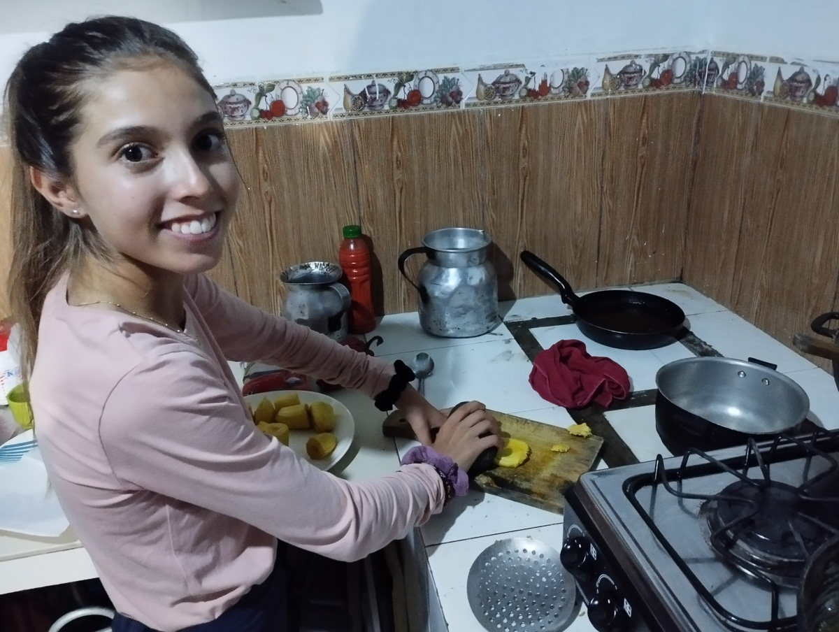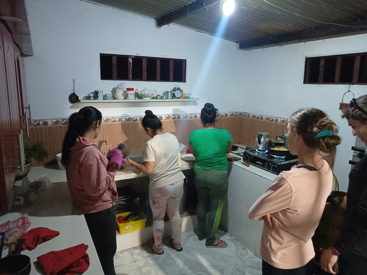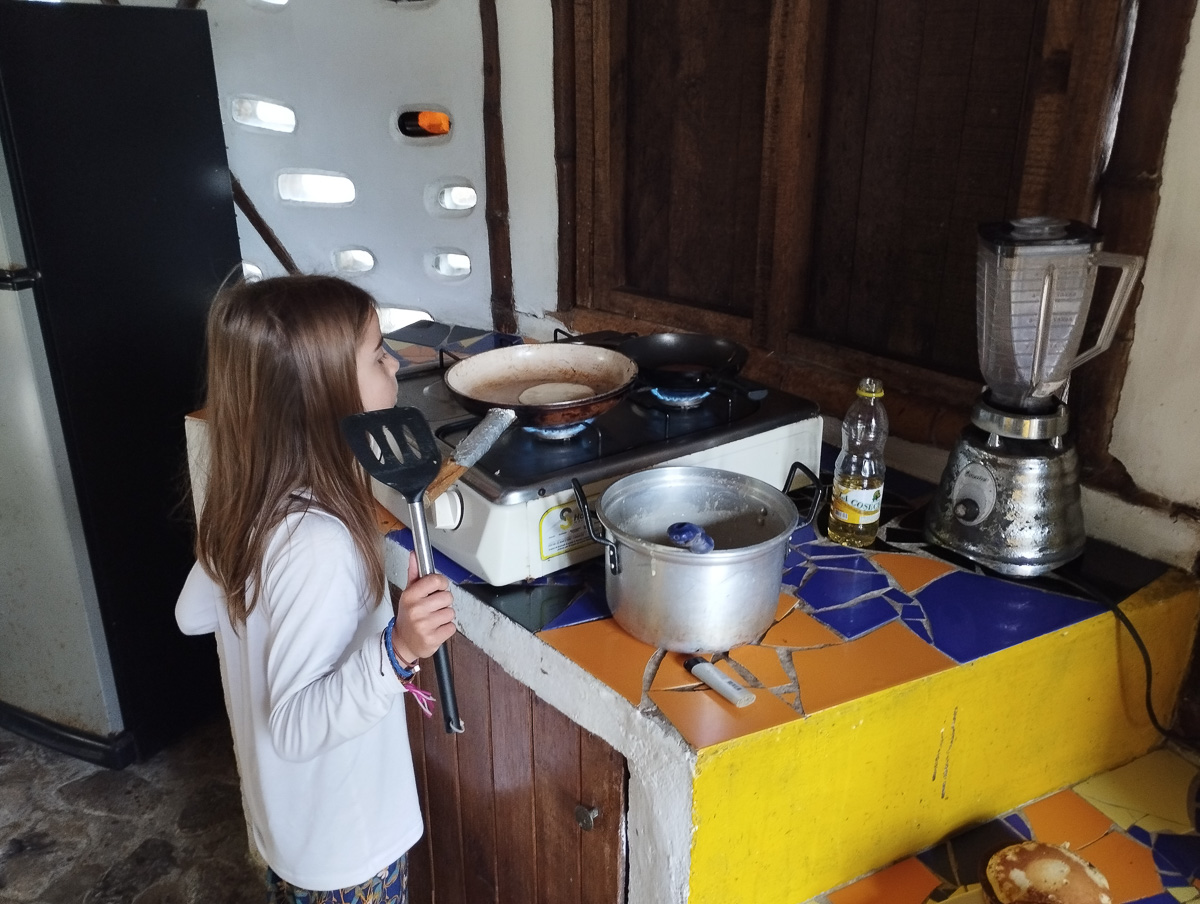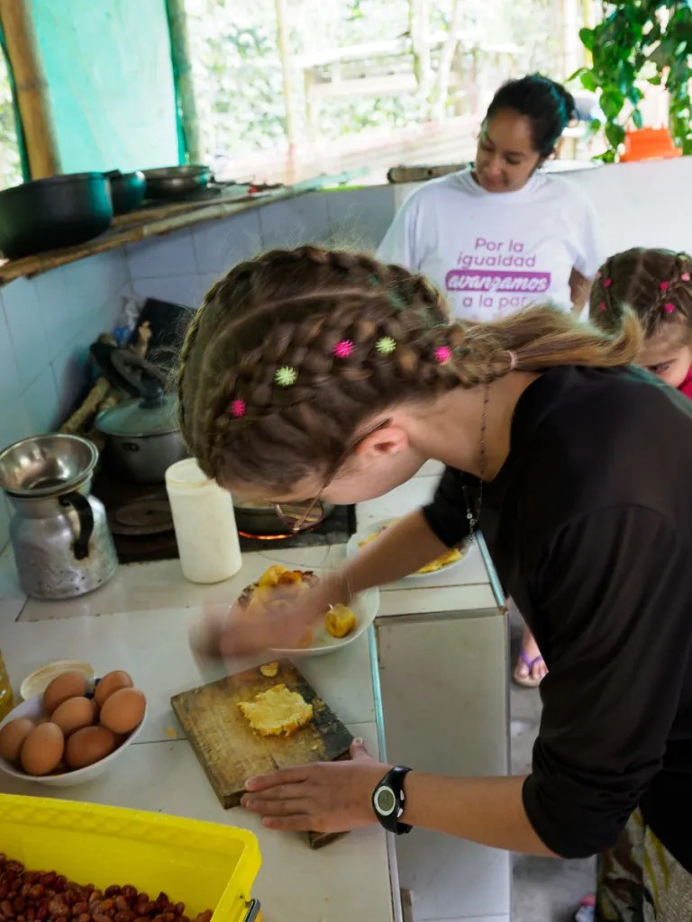 Ils nous font goûter un granité de pulpe de caco au goût citronné. encore une nouvelle saveur fruitée à la veille de quitter la Colombie. Nous cuisinons entre femmes pendant que Damien va faire un foot dans le village voisin. C’est pour ces moments si conviviaux et naturels que notre voyage en Colombie a été si riche.