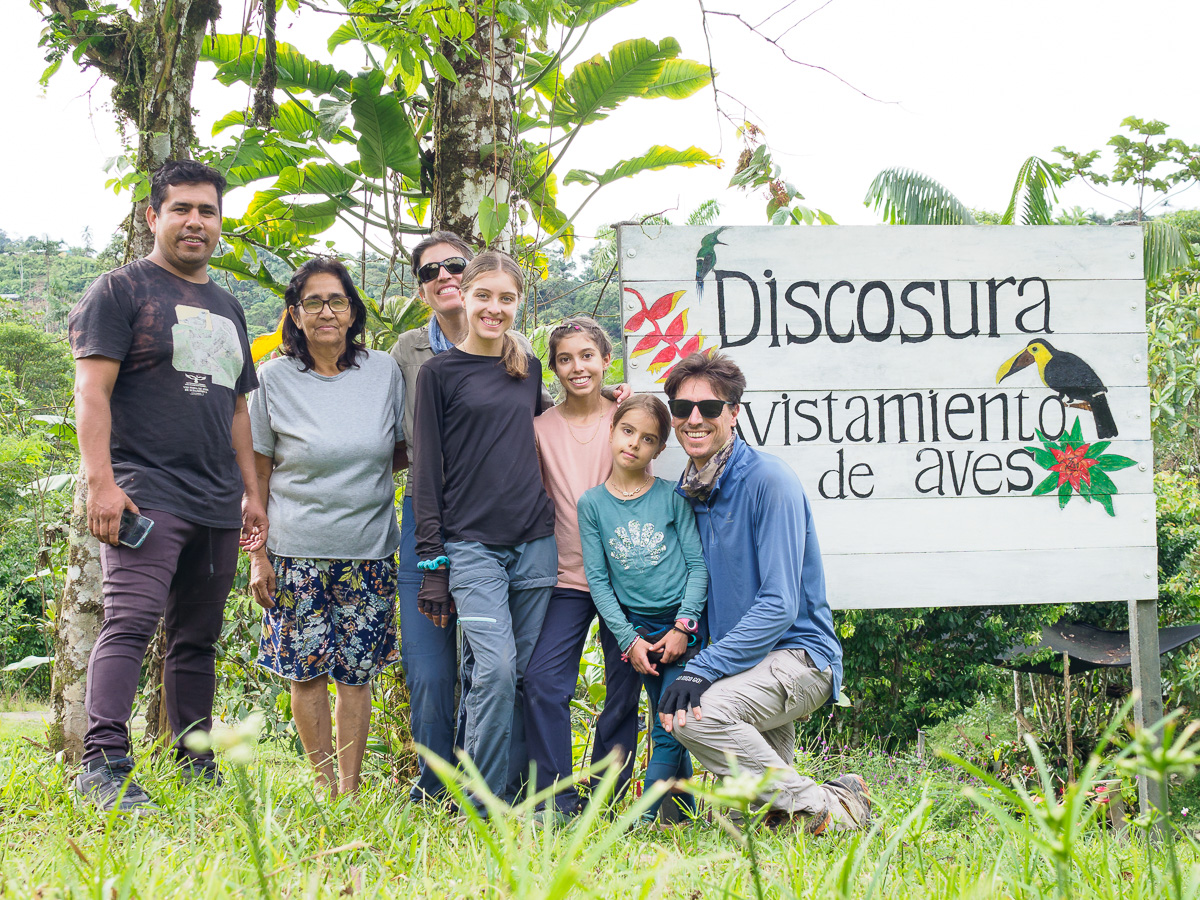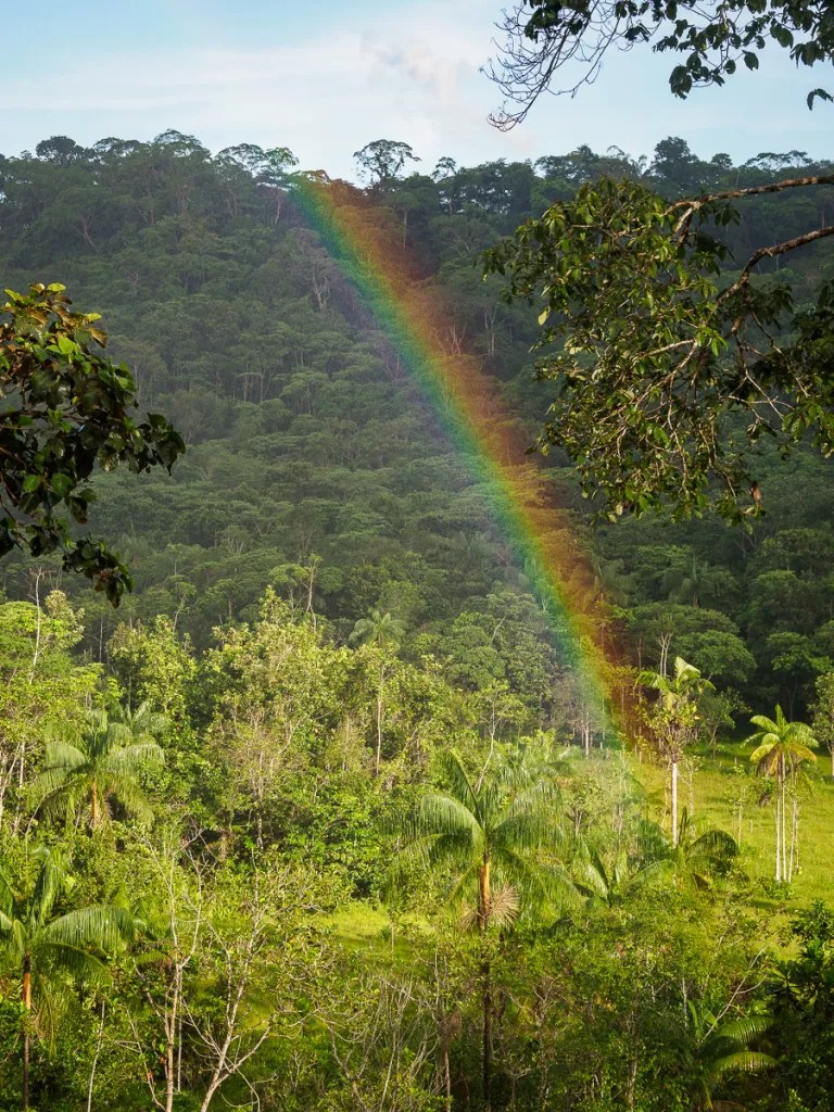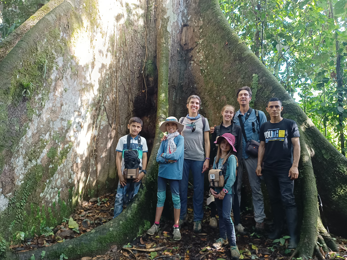 Nous quittons à regret la demeure paisible de Ferney pour une courte étape, direction la réserve naturelle Donde se oculta el sol. Corentin, installé depuis 10 ans en Colombie nous y accueille et nous guide à travers marais et forêt à la découverte des oiseaux de la région. On y admire des Tangaras multicolores, splendides, ainsi que des mochilleros, oiseaux dont le nid pendu aux branches ressemble à un sac à dos. Leur chant identique à celui d’une goutte d’eau est très reconnaissable. Nous vivons aussi un moment étrange, celui où nous entendons la pluie arriver : un bourdonnement comme un roulement de tambour. ce sont les gouttes qui résonnent quand elles s’écrasent sur les feuillage denses des arbres au loin ! Nous sommes rejoints par une équipe de photographes et scientifiques professionnels, très connus en Colombie. Ils travaillent pour de grands magazines de photos et nous passons une soirée incroyable avec eux.