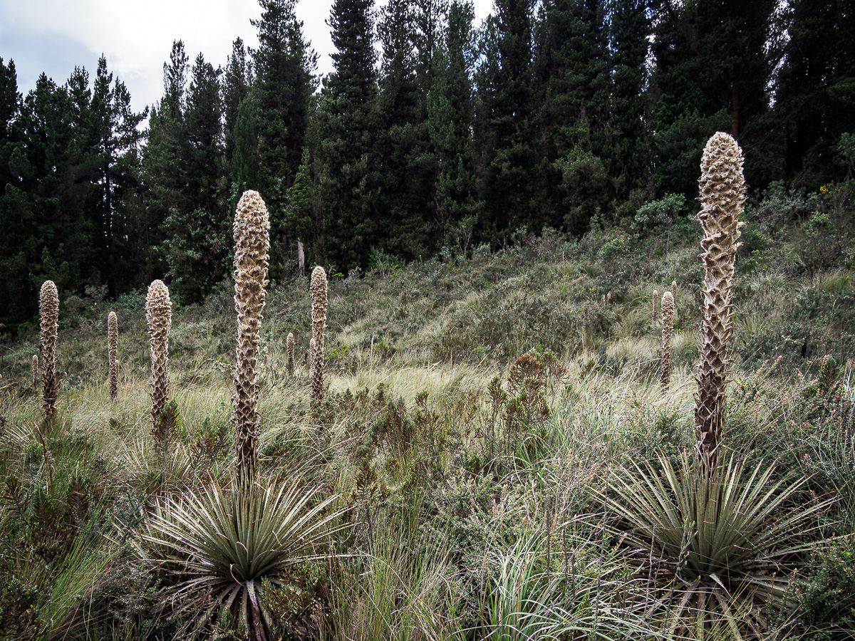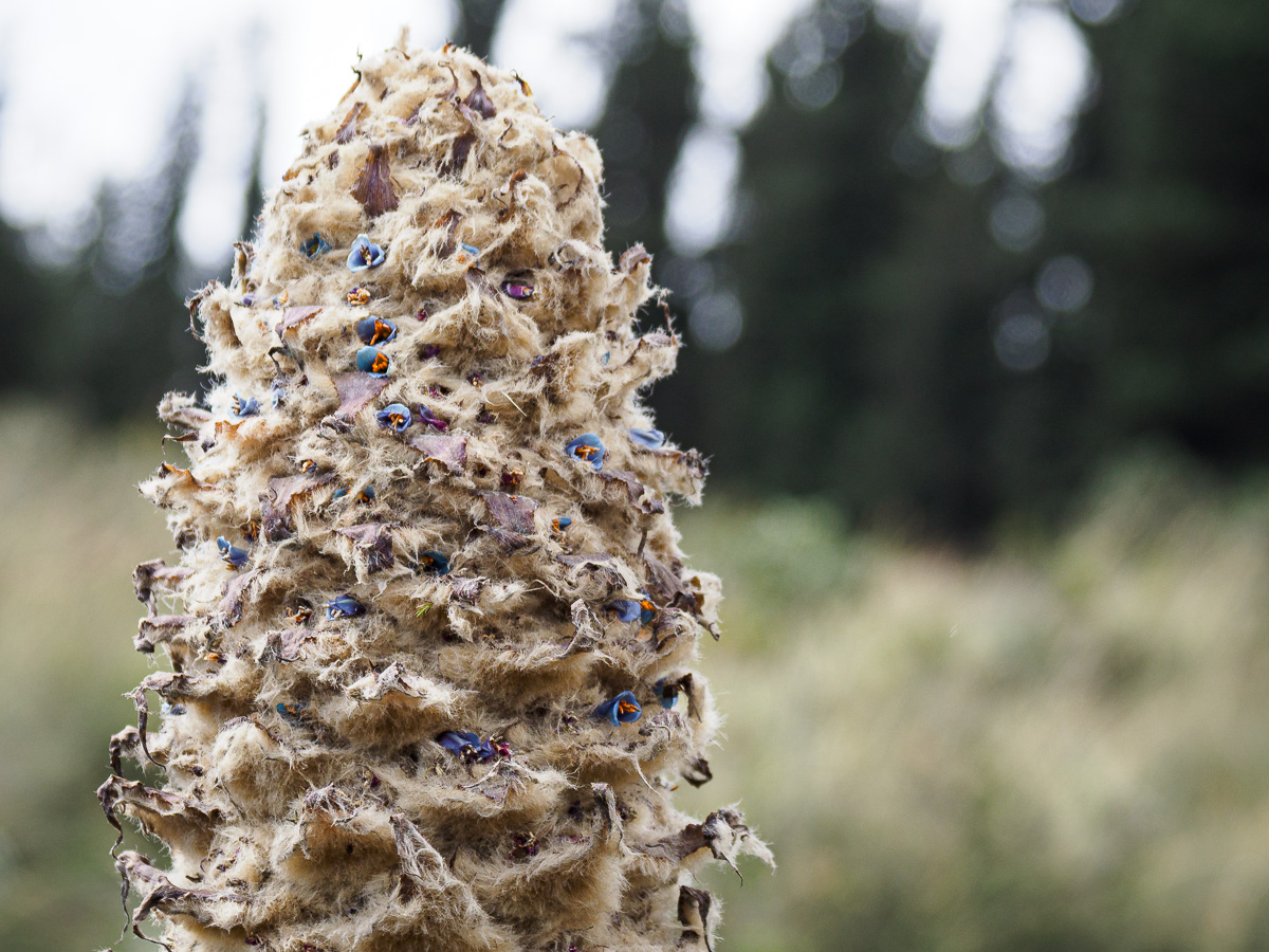 Nous sommes le 21 juin, jour du solstice d’été et surtout de l’anniversaire de Damien. Nous trouvons une petite cafétéria dans le parc pour fêter ça et nous baladons le long de canyons impressionnants creusés par les lahars et les coulées successives. La flore locale s’est adaptée à ces milieux ventés, certaines plantes sont couvertes de cire pour se protéger du froid, d’autres sont de véritable pièges de rosée pour conserver la moindre gouttelette d’eau. De l’un de ces specimens, entre le cactus et la plante grasse, pousse une très haute fleur duveteuse qui nous rappelle le toucher des frailejones et dessus, de magnifiques corolles bleues, couleur inattendue dans cet univers monochrome…. de quoi attirer sur ses étamines les quelques insectes vivant ici et nécessaires a sa reproduction.