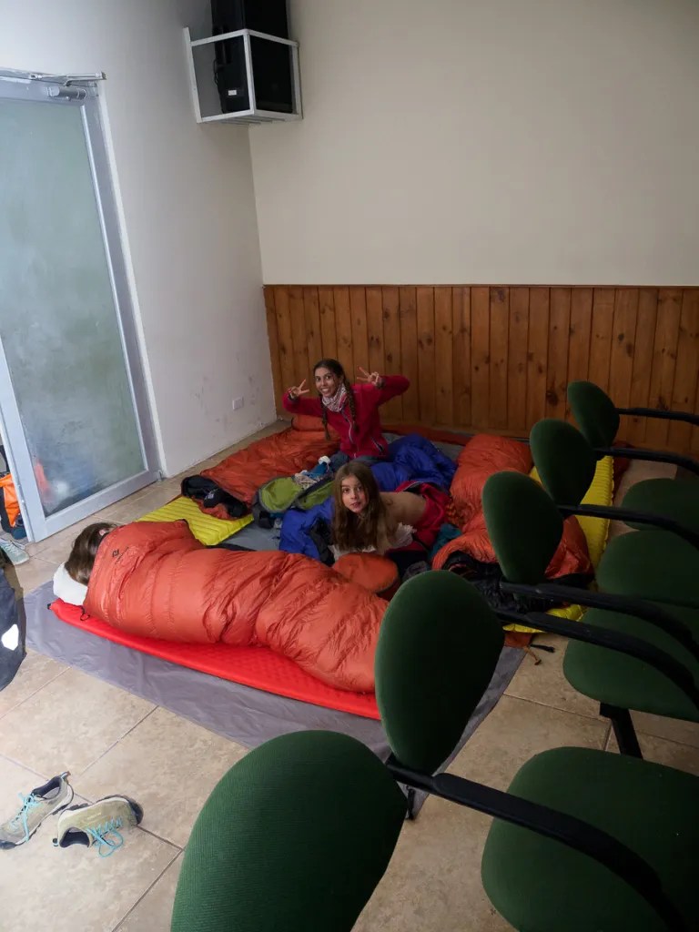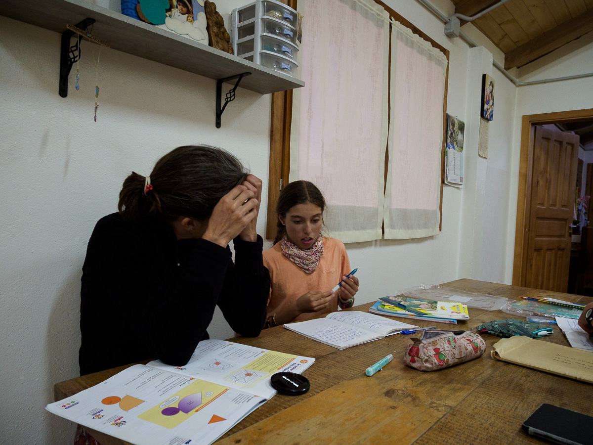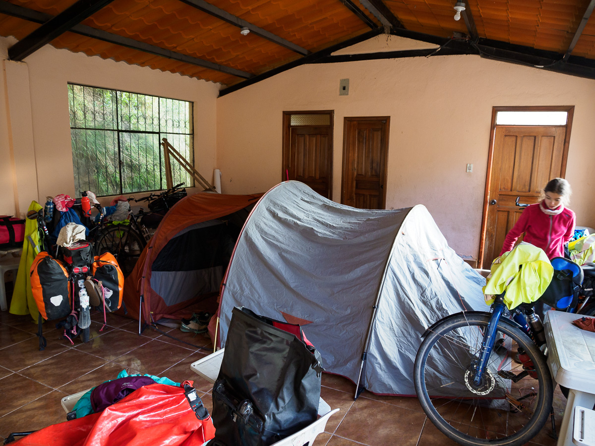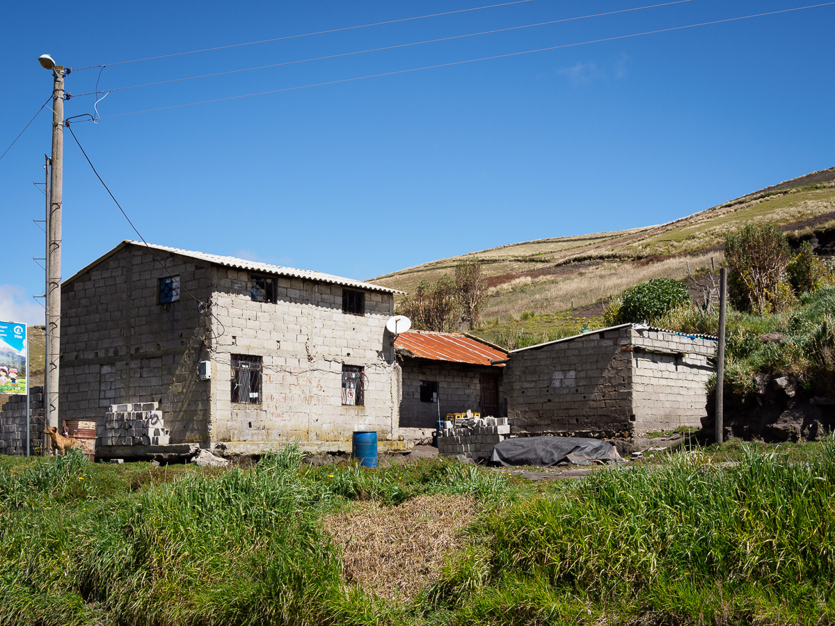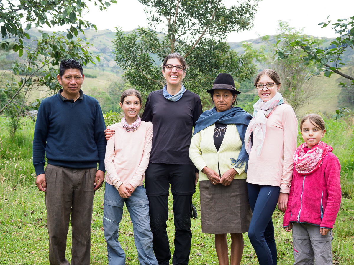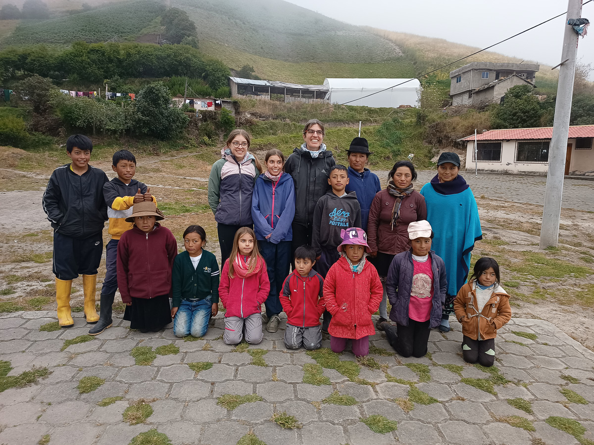 Apres moultes recherches d’un coin abrité pour le déjeuner, nous choisissons une entrée de chemin avec quelques eucalyptus. Une voiture passe. Quelques instants plus tard, Betha nous rejoint et nous invite dans sa maison douillette à souhait. C’est une missionnaire italienne qui habite ici depuis 40 ans et qui aide les personnes en difficulté. Nous ne repartirons que le lendemain. Betha, Adelaida et Monica, deux jeunes Equatoriennes nous accueillent à bras ouverts. Bien au chaud, nous faisons école et nous installons dans notre dortoir.