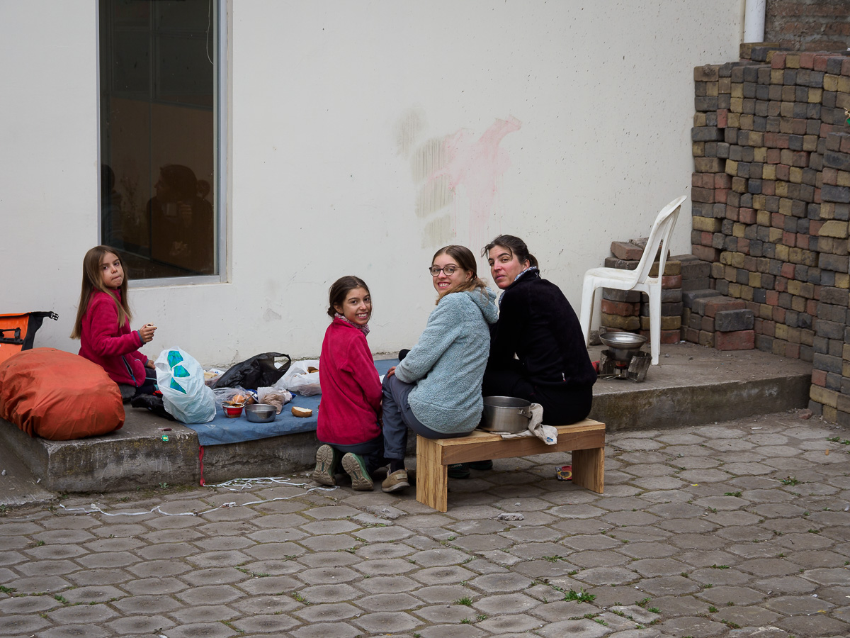 Nous descendons le coeur léger vers Pujilli, petite bourgade qui nous étonne agréablement avec son petit centre colonial et mignon. Nous avons l’autorisation de bivouaquer dans un parc du centre mais nous comprenons que les filles ont besoin de se poser deux nuits au même endroit. Nous essayons autant que possible d’être à l’écoute les uns des autres et nous trouvons donc un petit appartement avec un four qui fonctionne. A nous, gratins dauphinois et autres folies !