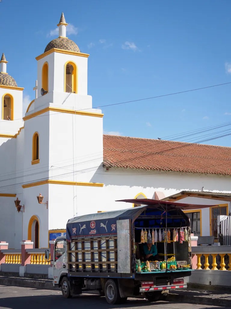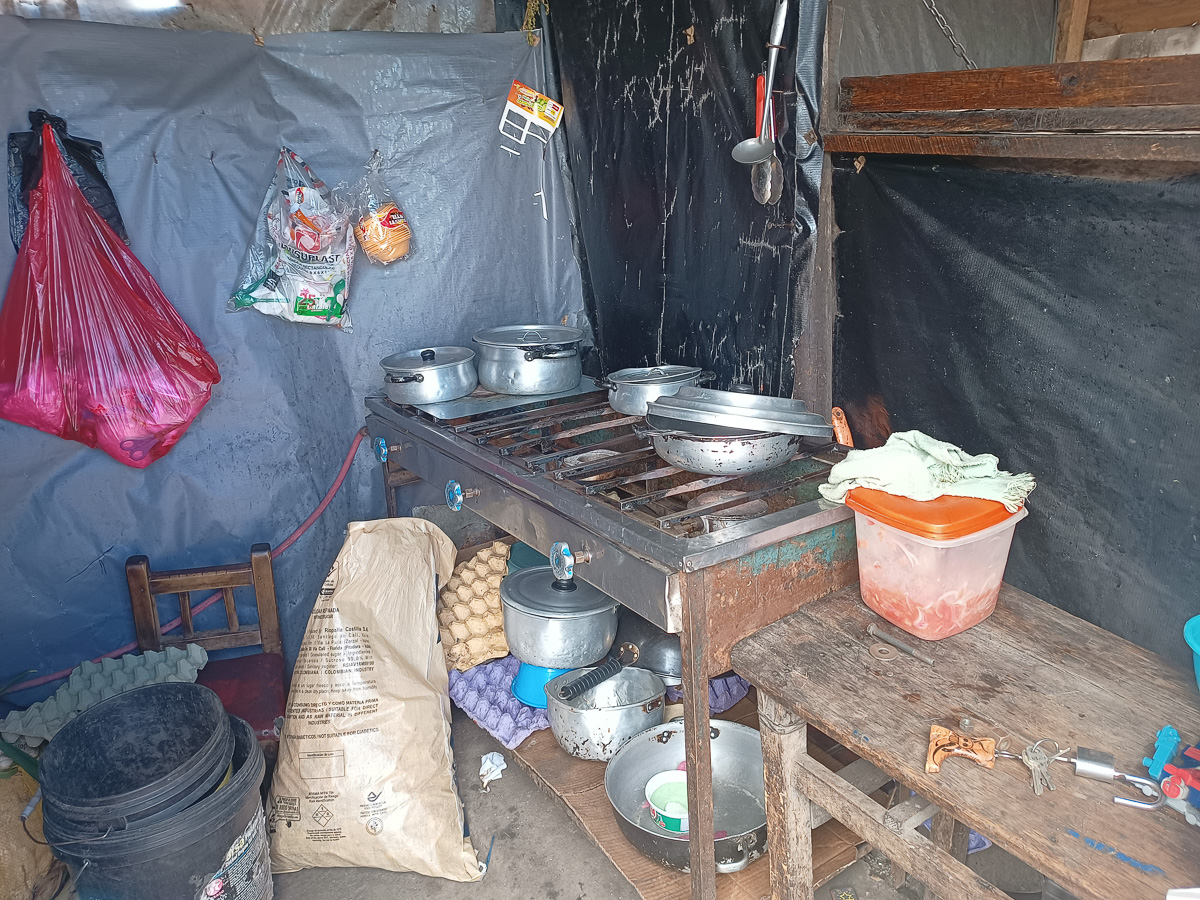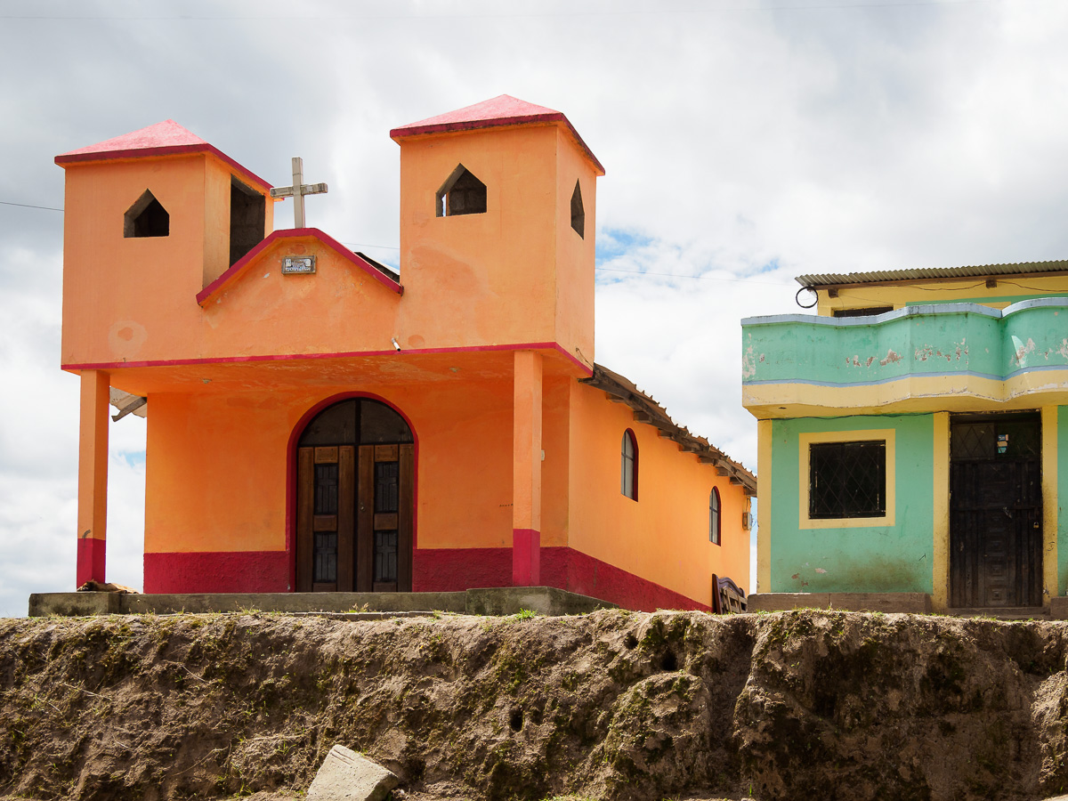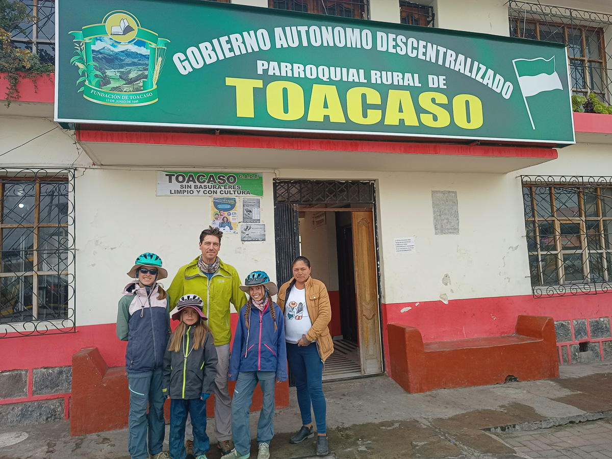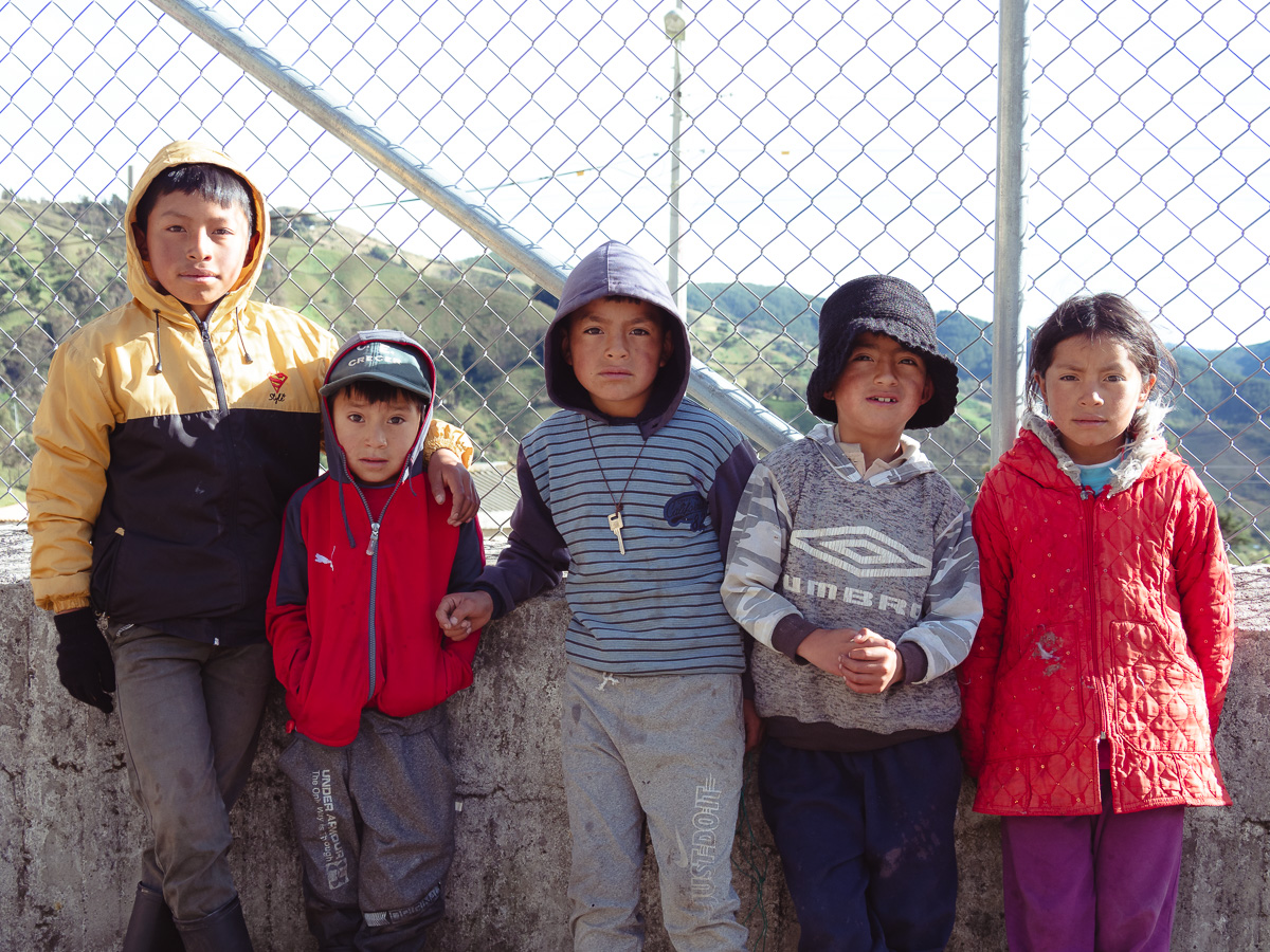 Ressourcés par cet univers sauvage, où nous sommes seuls, nous repartons le lendemain sous une brume épaisse. Journée de transition, sur une route passante, bordée de déchets et longée de fabriques artisanales de briques dans lesquelles nous voyons beaucoup d’enfants travailler… Nous atteignons le village poussiéreux de Toacaso. Alors que nous pique niquons, un employé municipal s’approche et nous propose spontanément une salle pour dormir ce soir. Nous acceptons volontiers! Un petit tour dans le village est l’occasion de goûter à la boisson locale, la colada morada préparée à partir de baies sauvages d’altitude. Nous rejoignons nos pénates et passons une belle soirée entre cuisine et jeu.