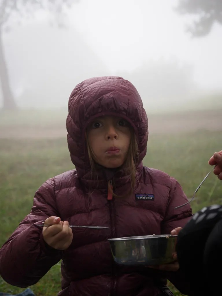 Le vent fait bien chuter le ressenti des températures mais nous en profitons pleinement et nous autorisons une grasse matinée car le brouillard nous entoure au petit matin.