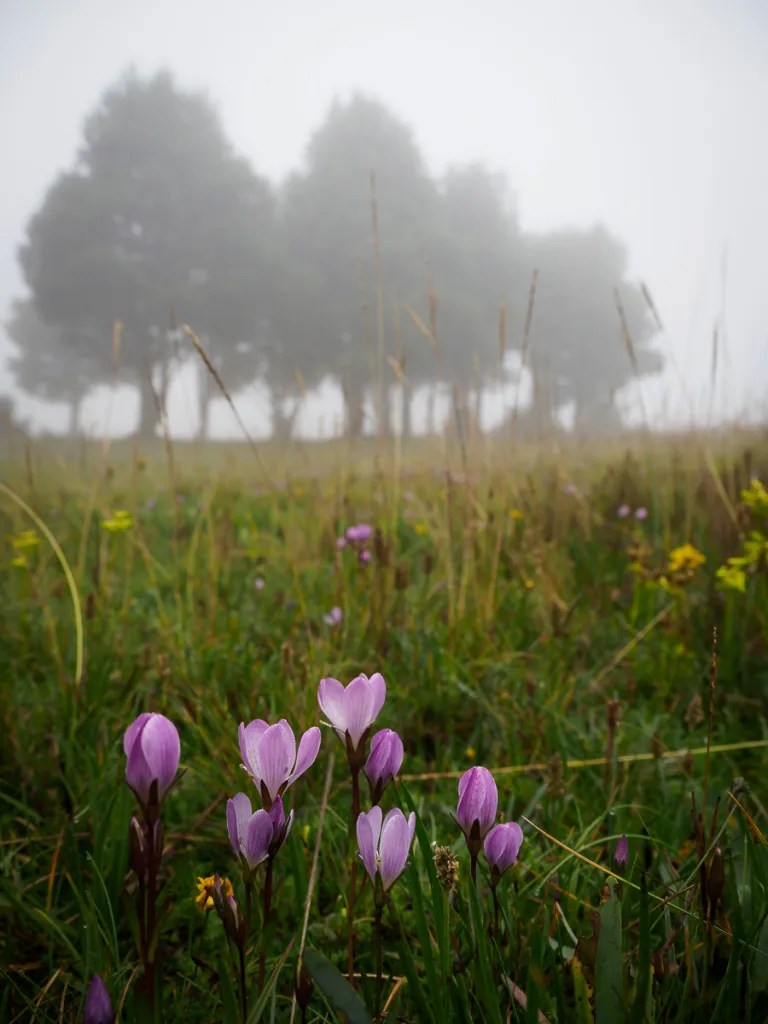 Peu à peu, tout devient plus minéral. Survivre est un défi pour toutes les espèces. Les derniers pâturages laissent la place à des steppes dorées, rougeoyantes par endroit d’herbes pourpres, rosées un peu plus loin de fleurs d’altitude. ..