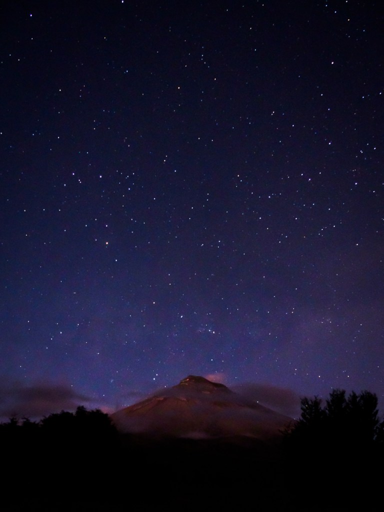 Admirer le Cotopaxi, le jeu des nuages et des fumerolles soufflés par le vent, les lumières changeantes, le cône sombre sous le dôme etoilé est un spectacle qui nous ravit et nous suffit. Je crois que l’on est tous un peu contemplatif !