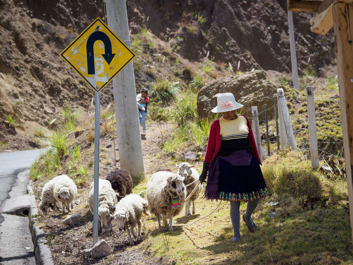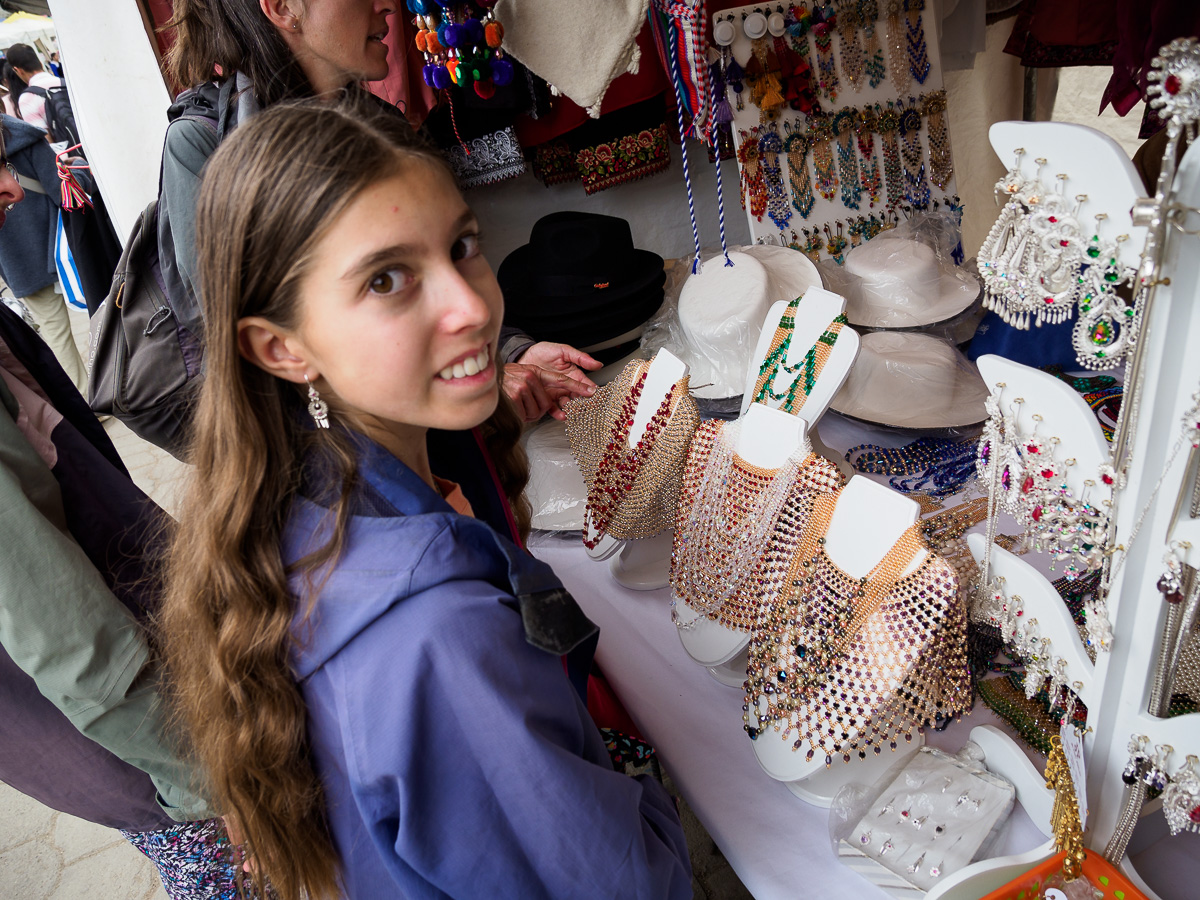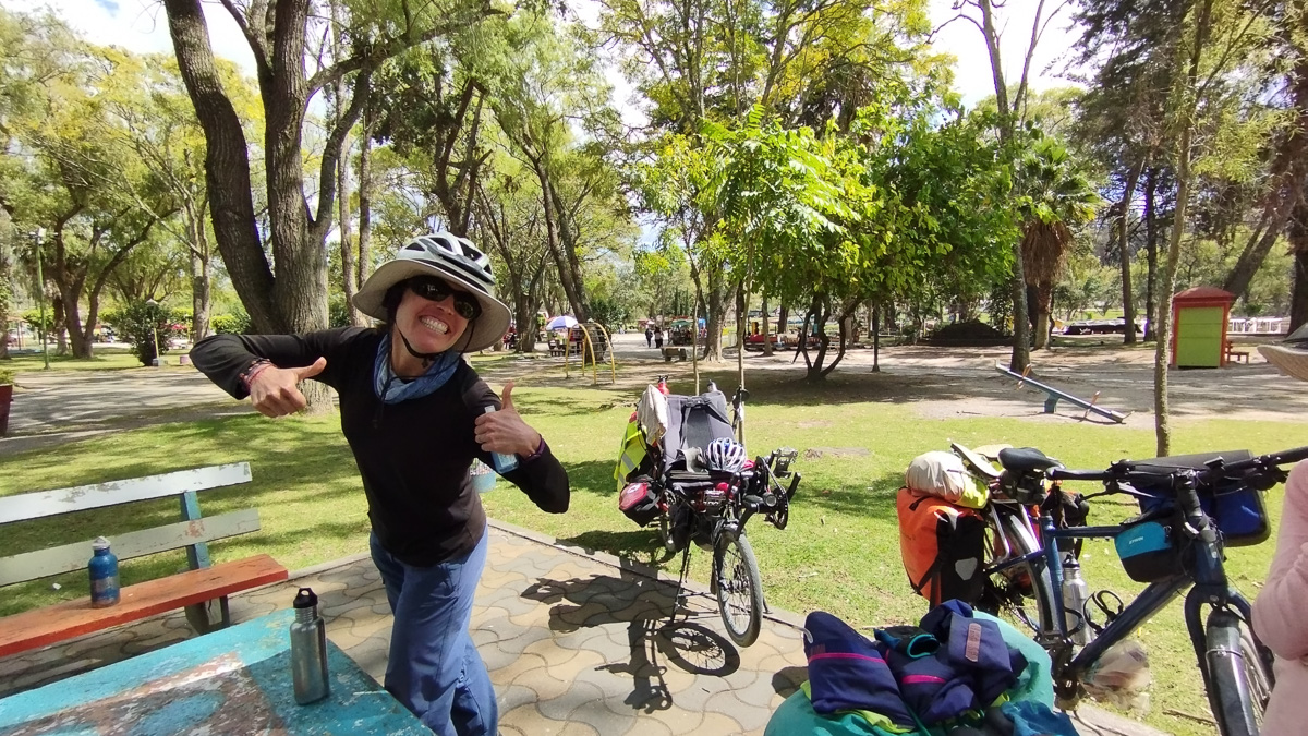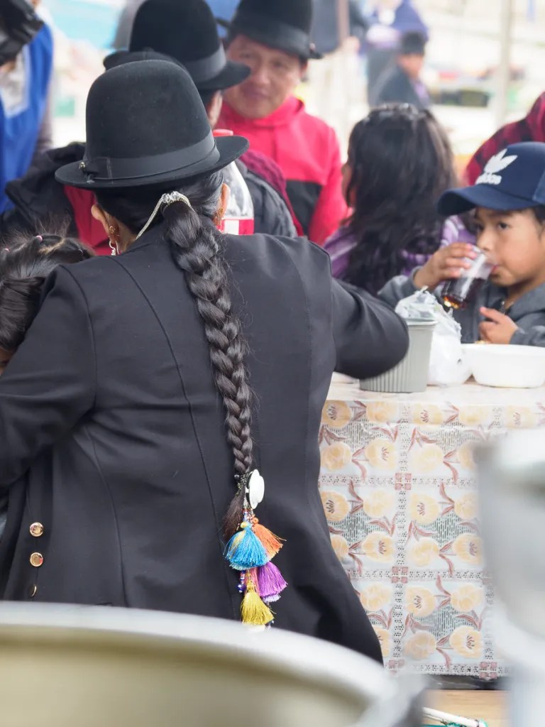 En ce dimanche d’élections, l’ambiance est au calme et à la détente. Nous ne ressentons ici aucun danger, aucune menace. La feria dominicale est un moment de retrouvailles et d’achats pour tous. Nous déjeunons sur un stand à côté d’une belle mamie en habit traditionnel. Nous nous délectons de cette ambiance de marché, conscients que ce sont les derniers que nous arpentons… Nous profions aussi de notre pause pour péparer la suite de notre périple sur d’autres terres. Pas facile de se plonger dans un autre pays quand on veut profiter jusqu’au bout de celui dans lequel nous vivons depuis plus de trois mois. Mais cela permet aussi de se projeter et de continuer à avancer. Un peu d’école parmi tout ça et on repart vers Loja!
