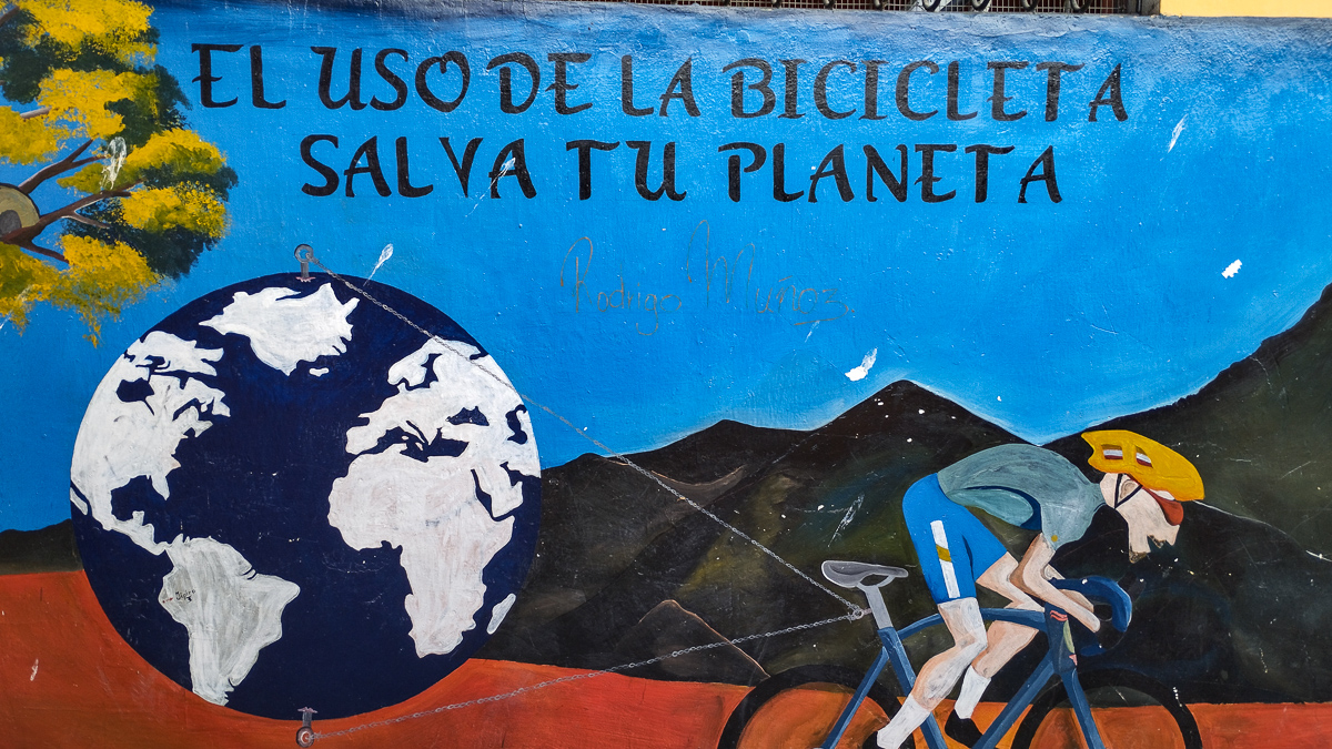 La piste traverse des villages fantômes, aux airs de western. Il ne manque plus que la musique du « bon, de la brute et du truand »: églises blanches, maisons aux balcons de bois et aux façades décrépies, soleil de plomb et air chargé de poussière. Sur les murs des écoles, nous lisons des messages de santé publique ou d’éducation. Les canyons environnants se piquent tâches vert argenté : des plantes d’agave, dont les locaux font une téquila équatorienne. Quand nous nous arrêtons demander de l’eau à un couple au fond d’une vallée, nous repartons avec un kilo d’oranges et des oeufs pour notre « merienda » ou repas du soir. Bel exemple de la générosité équatorienne.